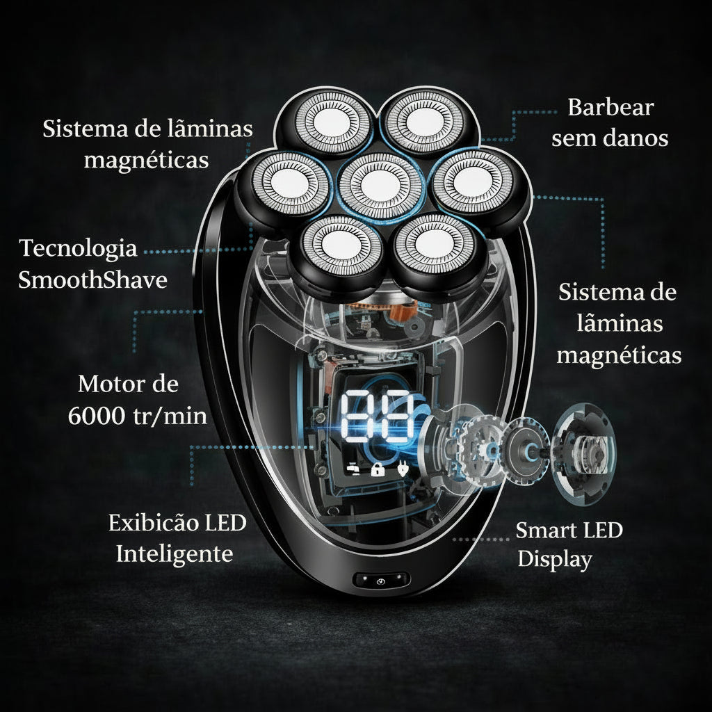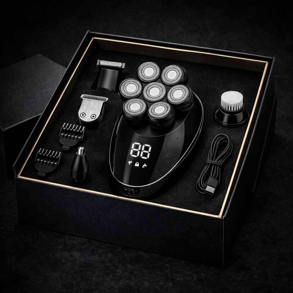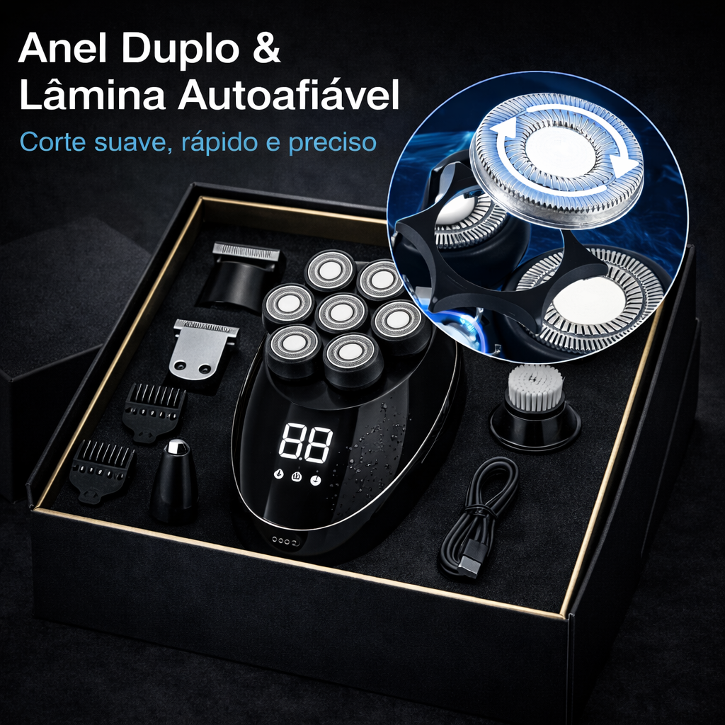 Após anos de complexos relacionados a uma calvície incipiente, descubra o nosso aparador elétrico 5 em 1 com cabeças múltiplas para homens, a solução ideal para dominar a sua aparência. Sinta-se bem na sua pele e afirme com confiança o seu couro cabeludo desimpedido!